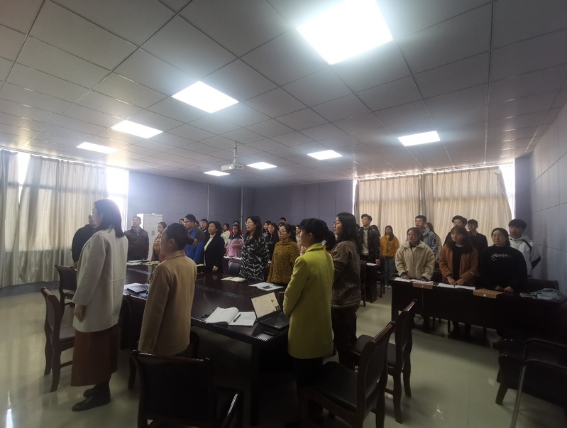 大会第二个阶段,李顺顺老师带领刚成为预备党员的同学宣读入党誓词。预备党员代表高雨荷同学发表入党感言,表示自己今后一定会以更高的标准要求自己,在班级在学校起到学生党员的先锋模范作用。接着,全体起立奏唱中华人民共和国国歌。
