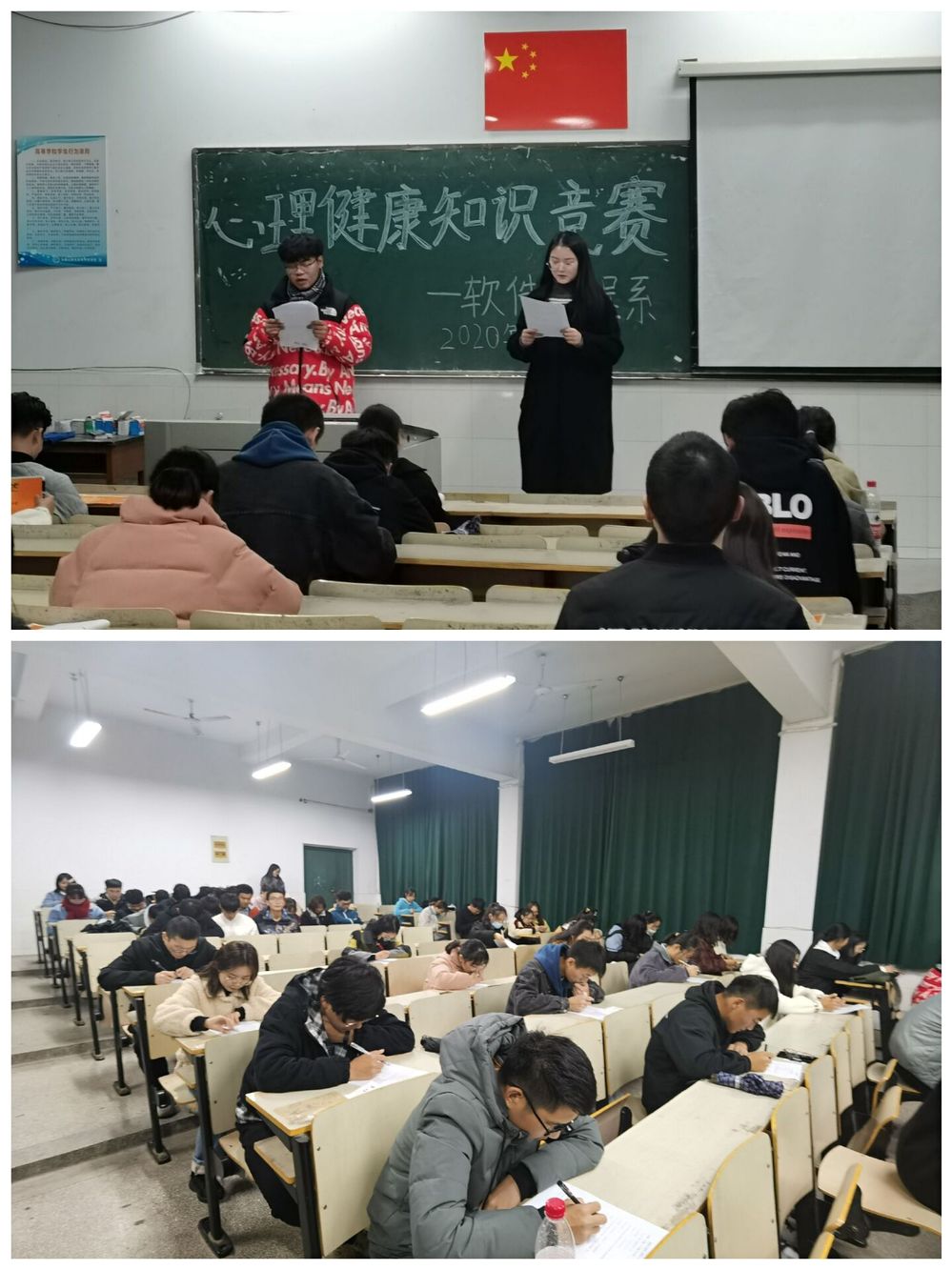 活动开始,首先由主持人介绍了比赛规则以及比赛流程。本次比赛以闭卷的形式进行,考察同学们对心理知识的了解程度。考场上同学们紧张有序,沉着冷静的书写每一道考题,比赛现场秩序井然,充分展现了我系大学生良好的精神风貌。