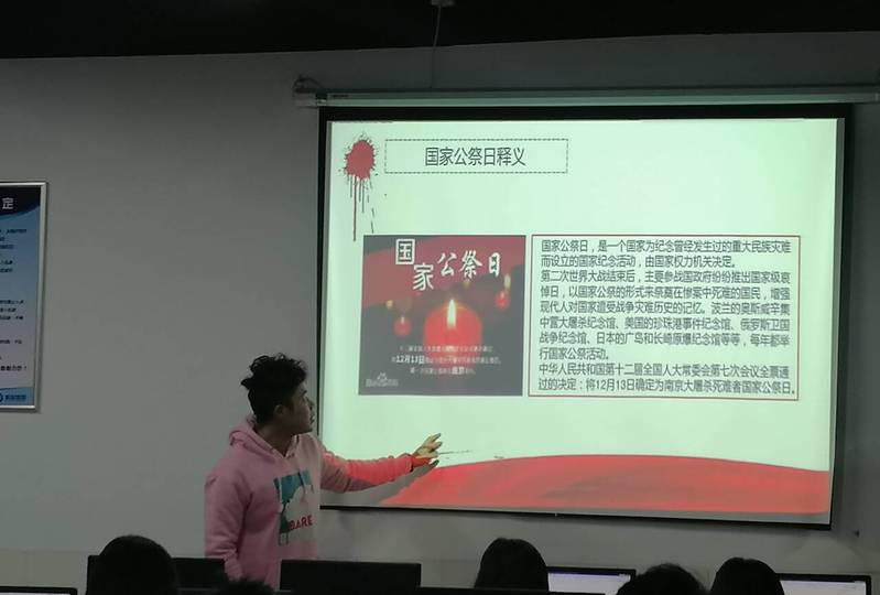 本次团日活动中,各班通过对精心制作的PPT进行讲解和观看视频的形式,让同学们了解了国家公祭日的来源及其历史意义。1937年12月13日,在南京大屠杀中,大量平民及战俘被日军杀害,无数家庭支离破碎,南京大屠杀的遇难人数超过30万。勿忘国耻,对30万遇难同胞的深切缅怀和对那段灾难历史的深刻反思,成为国人传承历史记忆的自觉追求,化作中华民族伟大复兴的不竭动力。团日活动中,同学们积极讨论,20级数字媒体应用技术1班刘林珠同学说,学习这段历史,是要告诫我们青年人,保持清醒状态,绝不能忘却历史、忘却苦难。20级计算机网络技术1班李响同学说,我要努力学习专业知识,提高自身素质,为建设社会主义现代化国家新征程而努力奋斗。