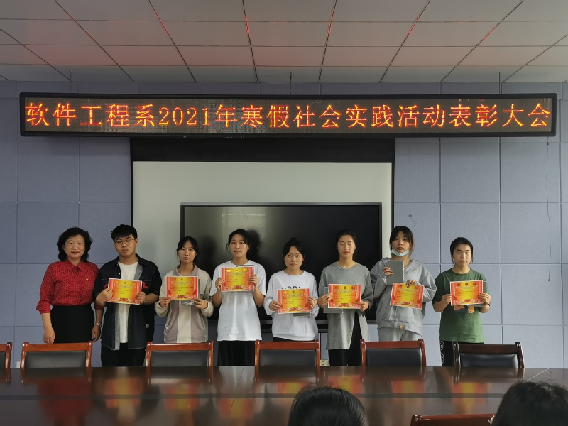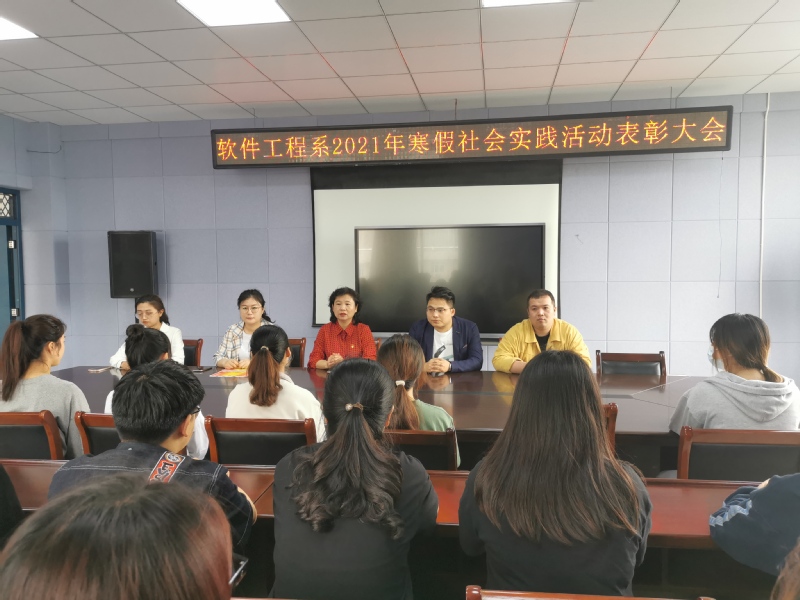 本网讯 为进一步推动系部寒假社会实践工作的深入开展,软件工程系于5月11日在行知楼601会议室召开了2021年寒假社会实践活动表彰大会,系党总支书记王莉娟、系辅导员老师以及受表彰的集体、个人参加了本次会议。会议由系组织员曾甜主持。