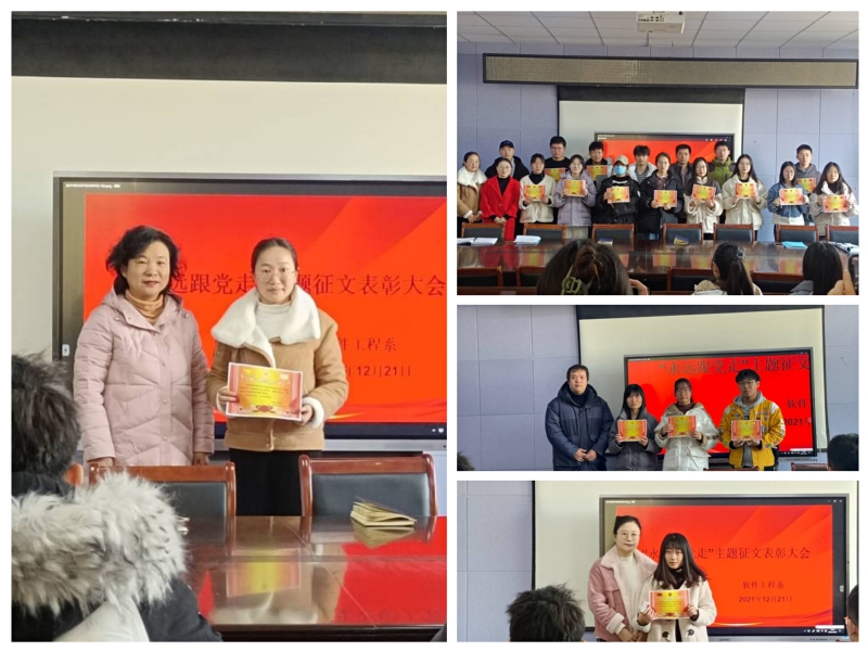 为庆祝中国共产党成立100周年,充分展示中国共产党百年光辉历程、伟大成就和宝贵经验,反映在中国共产党领导下新中国发生的举世瞩目的巨大变化,激励全系师生更加紧密地团结在以习近平同志为核心的党中央周围,软件工程系开展了“永远跟党走”主题征文活动,广大师生积极参加此项活动。参赛作品紧扣主题,叙述身边的喜人变化,讴歌身边的先进典型,书写中国共产党100年来的伟大历程和丰功伟绩。经评比,共有19位师生在比赛中获奖。