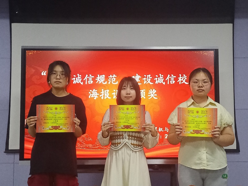 本次大赛旨在通过海报设计这一创意形式,引导同学们深入理解诚信的内涵与价值。创作过程中,同学们充分发挥想象和创意,运用色彩、线条和文字等多种元素,以生动形象的画面展现了诚信在我们日常学习生活中的重要作用。经过老师们的专业评审,最终,23级计算机网络技术一班谢佳慧同学和23级数字媒体技术一班高晨悦同学获得一等奖;23级大数据技术班张靖婕等五位同学获得二等奖;23级数字媒体技术一班耿雨婷等七位同学获得三等奖;23级数字媒体技术一班杨心平等九位同学获得优秀奖。