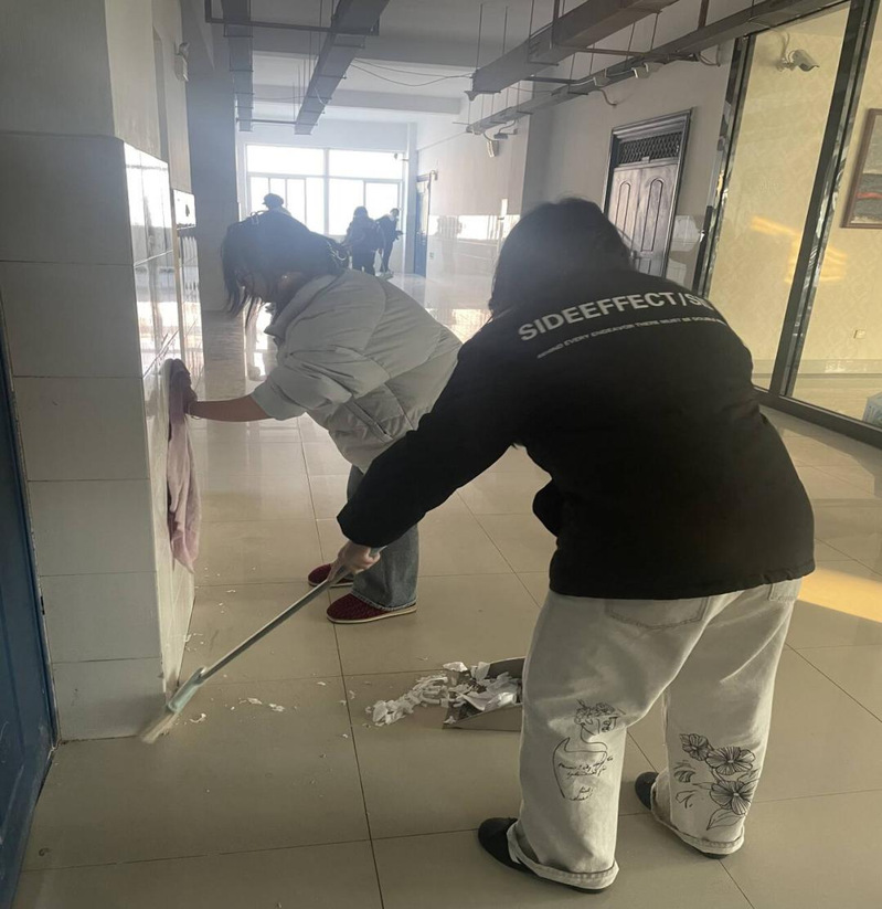 活动当天,入党积极分子早早来到教学楼行知楼下,迅速投入到清洁工作中。大家分工明确,配合默契,有的负责清扫楼梯和走廊的垃圾,有的仔细铲除墙面和门上的纸屑,大家干劲十足,充分展现了不怕脏、不怕累的奉献精神。经过几个小时的辛勤劳动,教学楼的面貌焕然一新,为师生们创造了更加整洁、温馨的学习和工作环境。