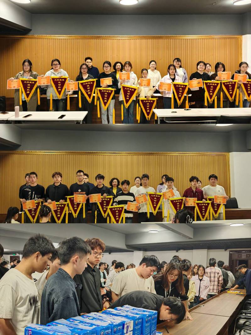 大会伊始,李顺顺向与会人员介绍文明寝室创建及评比开展情况。随后,曾甜宣读“文明寝室”获奖名单,每念出一个寝室号,台下便响起热烈的掌声,饱含着同学们对获奖寝室的祝贺。紧接着,与会领导老师为获奖寝室颁发“文明寝室”流动红旗、奖状和奖品,获奖寝室代表们手捧流动红旗和奖状,脸上洋溢着自豪。